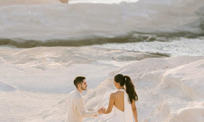 True Story by Vasilis Kouroupis | Berenisse & Dimos: Ένας καλοκαιρινός γάμος με ατόφιο συναίσθημα στο κατάλευκο τοπίο της ΜήλουΤο καλοκαιρινό φως, το απόλυτο μπλε της θάλασσας και το κατάλευκο τοπίο αιχμαλωτίστηκαν μοναδικά από τον φακό του καταξιωμένου φωτογράφου.