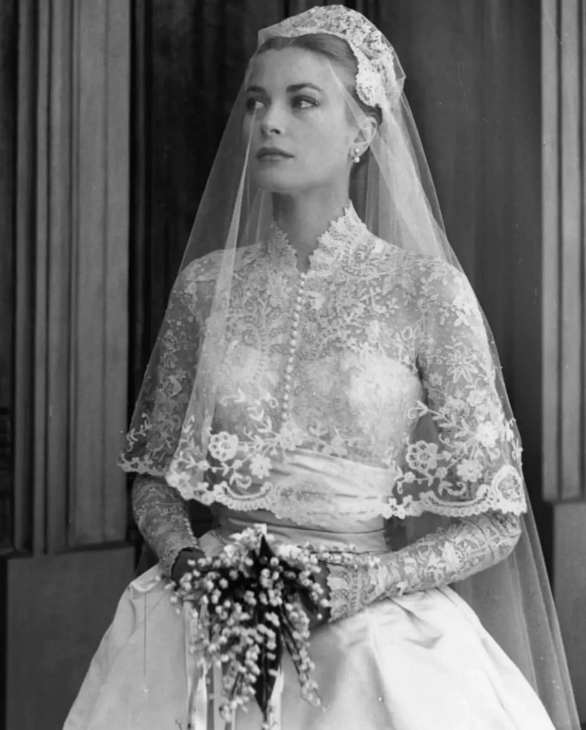 Το κλασικό νυφικό της Grace Kelly, η οποία παντρεύτηκε το 1956 τον πρίγκιπα Ρενιέ Γ’ του Μονακό, διαμόρφωσε τις τάσεις των επόμενων δεκαετιών. Η Αμερικανίδα ηθοποιός επέλεξε για την πιο ξεχωριστή ημέρα της ζωής της ένα gown με high neck, μακριά μανίκια, χιλιάδες πέρλες που ράφτηκαν στο χέρι και vintage δαντέλα 125 ετών από τις Βρυξέλλες. Εκείνη την εποχή, το νυφικό κόστισε 65.200 δολάρια, που αντιστοιχεί σε περίπου 786.000 δολάρια σήμερα.