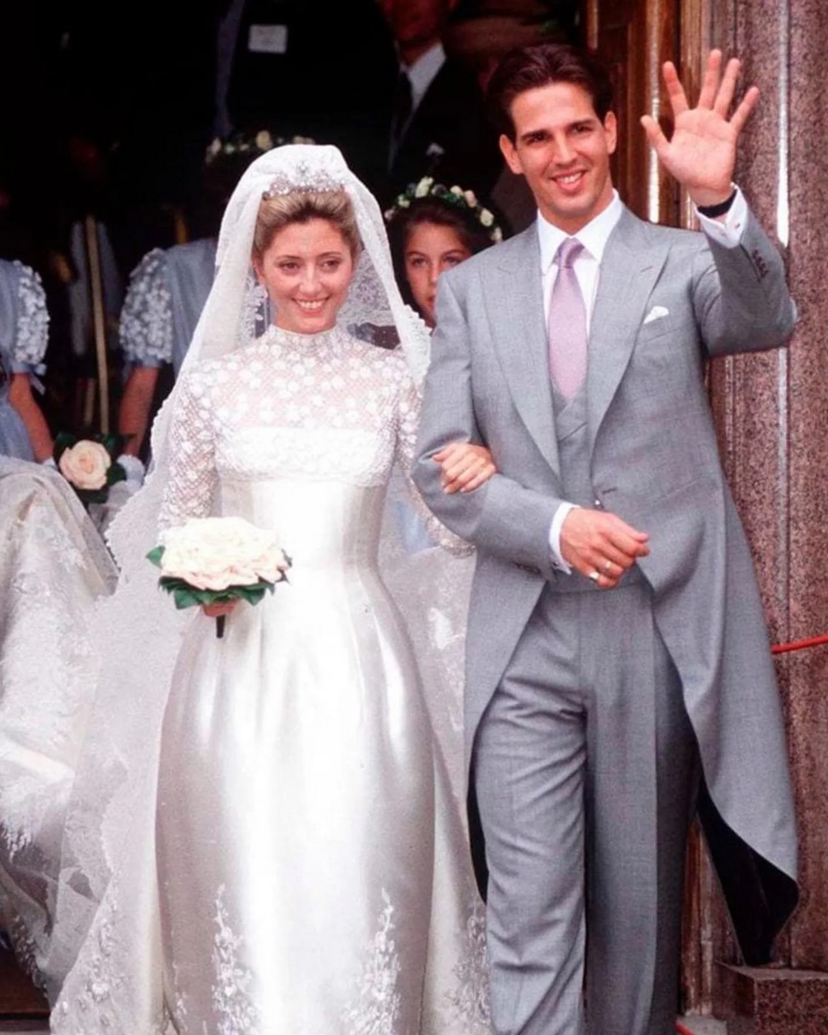 Η Marie-Chantal Miller παντρεύτηκε τον Παύλο ντε Γκρες το 1995 φορώντας μακρυμάνικο νυφικό του οίκου Valentino, διακοσμημένο με μαργαριτάρια και με ουρά 4.6 μέτρων από δαντέλα Chantilly. Το wedding dress κόστισε 225.000 δολάρια, ποσό που αντιστοιχεί σε 484.994 δολάρια σήμερα.