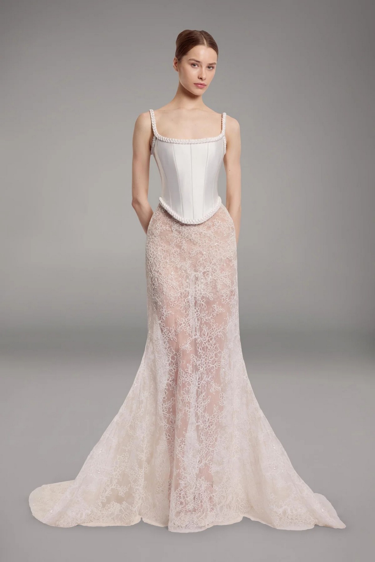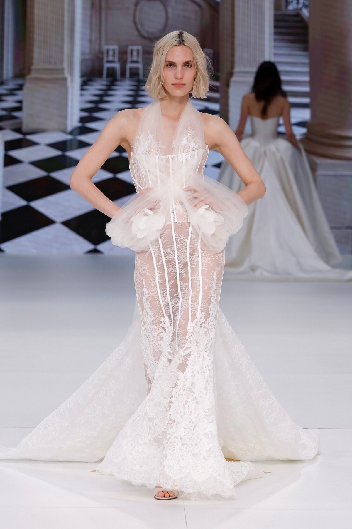 Όπως όλα δείχνουν λοιπόν, οι sheer νυφικές εμφανίσεις πρόκειται να πρωταγωνιστήσουν στους γάμους της σεζόν, όχι μόνο μέσα από illusions σε αποχρώσεις που πλησιάζουν τον τόνο του δέρματος, αλλά κυρίως εγκαταλείποντας εντελώς την επένδυση. Το 2026 τα naked bridal looks δεν αποπνέουν απροκάλυπτο αισθησιασμό, αλλά αντίθετα χαρίζουν μια εκλεπτυσμένη γοητεία, μέσα από διάφανες δαντέλες, layers από τούλι και οργάντζα, διάφανα bodices κ.ά.