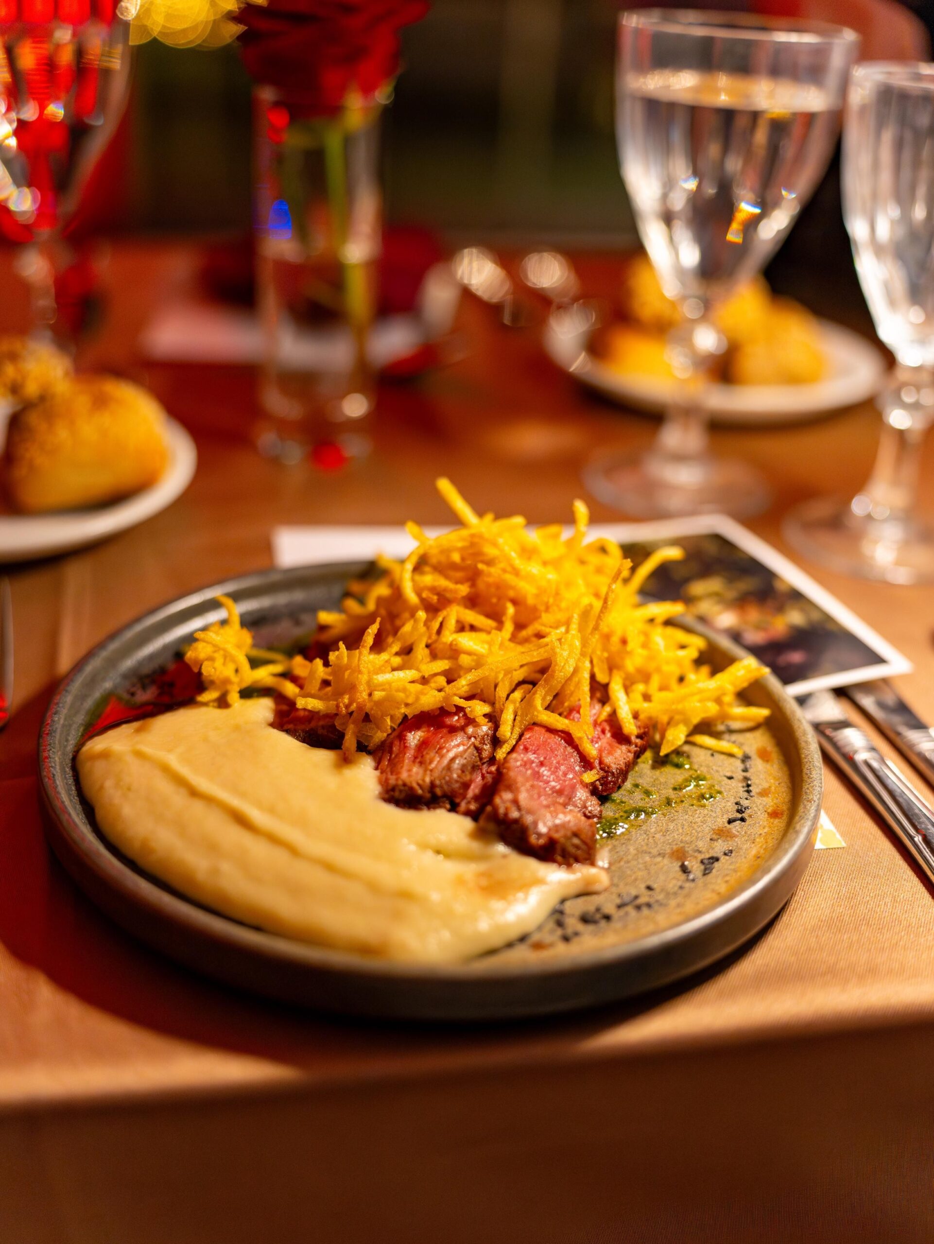 Και φυσικά, τα συνοδευτικά είναι τόσο προσεγμένα όσο και τα κυρίως, όπως πουρές γλυκοπατάτας με πικραμύγδαλο, πατάτες tourne με ξύσμα πορτοκαλιού, σουφλέ σπανάκι με ricotta, ή σπαράγγια με baby carrot.
