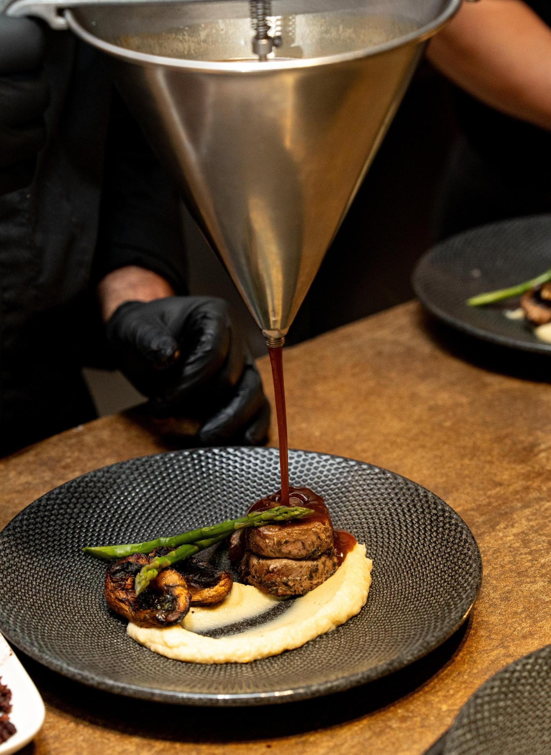 Σε ένα σερβιριστό μενού, δημιουργείται μια ξεχωριστή βιωματική εμπειρία για τον καλεσμένο, ιδιαίτερα όταν τα πιάτα αποκτούν μια πιο interactive διάσταση και ολοκληρώνονται μπροστά του. Μικρές κινήσεις, φινιρίσματα στο τραπέζι και στιγμές ακρίβειας δημιουργούν μια διακριτική σύνδεση ανάμεσα στην κουζίνα και τον καλεσμένο.