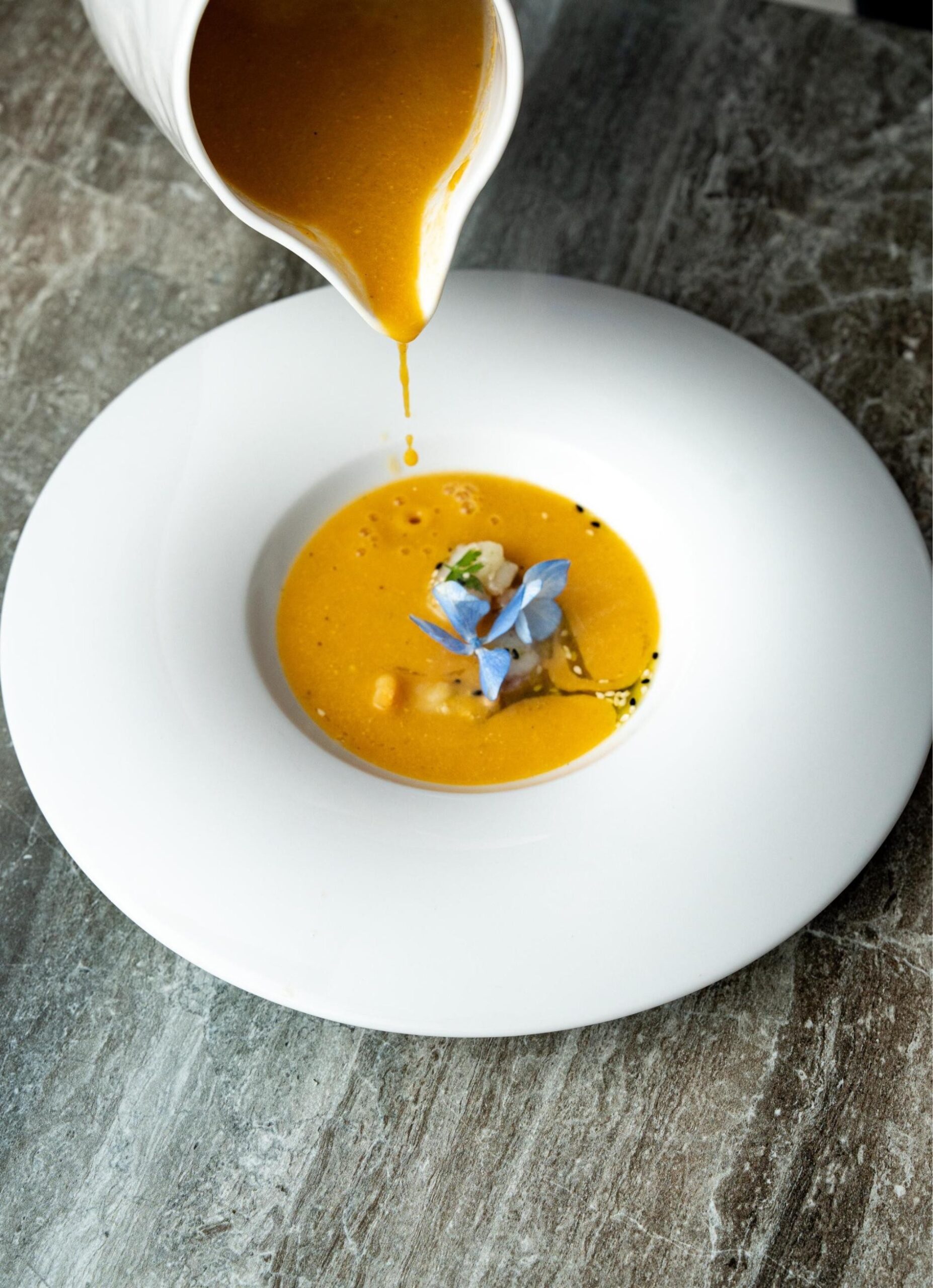 Η γευστική αρμονία συνεχίζεται με πιο γήινες και comfort νότες. Η βελουτέ άγριων μανιταριών με τρούφα και το κριθαρότο με bisque καραβίδας προσφέρουν βάθος και ζεστασιά, ενώ το αρνάκι γάλακτος με σύγχρονες τεχνικές και η αιγαιοπελαγίτικη σφυρίδα ολοκληρώνουν το κυρίως μέρος ενός μενού που θυμίζει γαστρονομική σκηνοθεσία υψηλής αισθητικής.