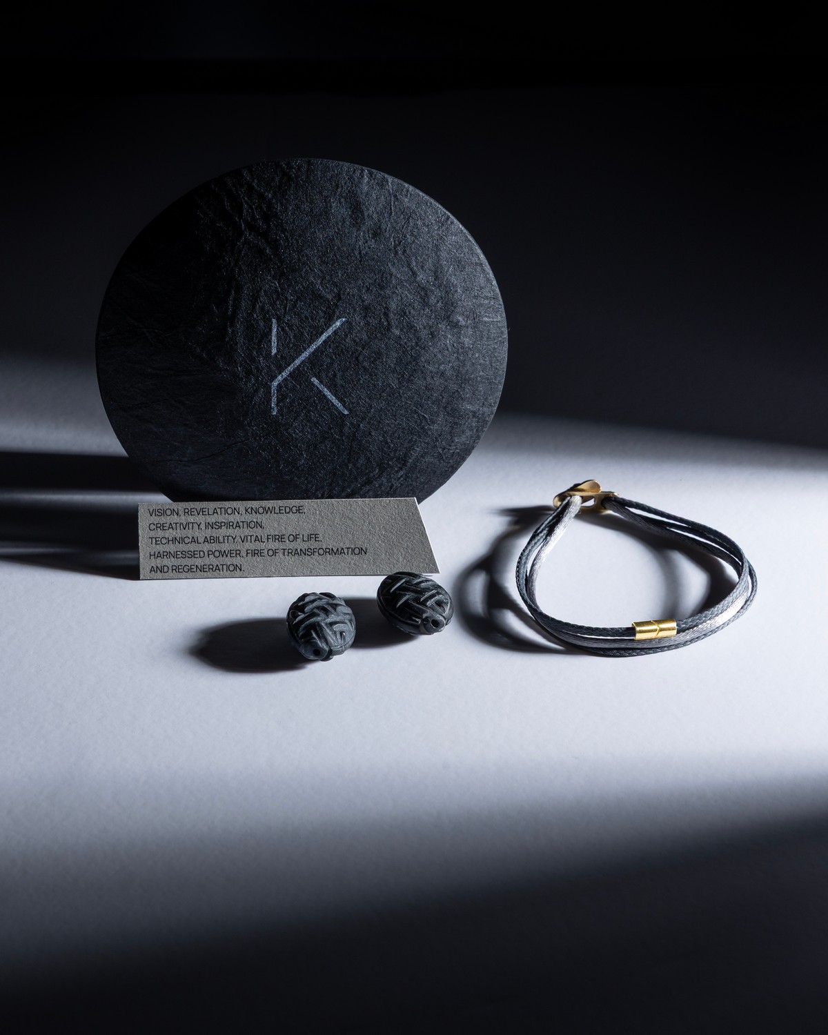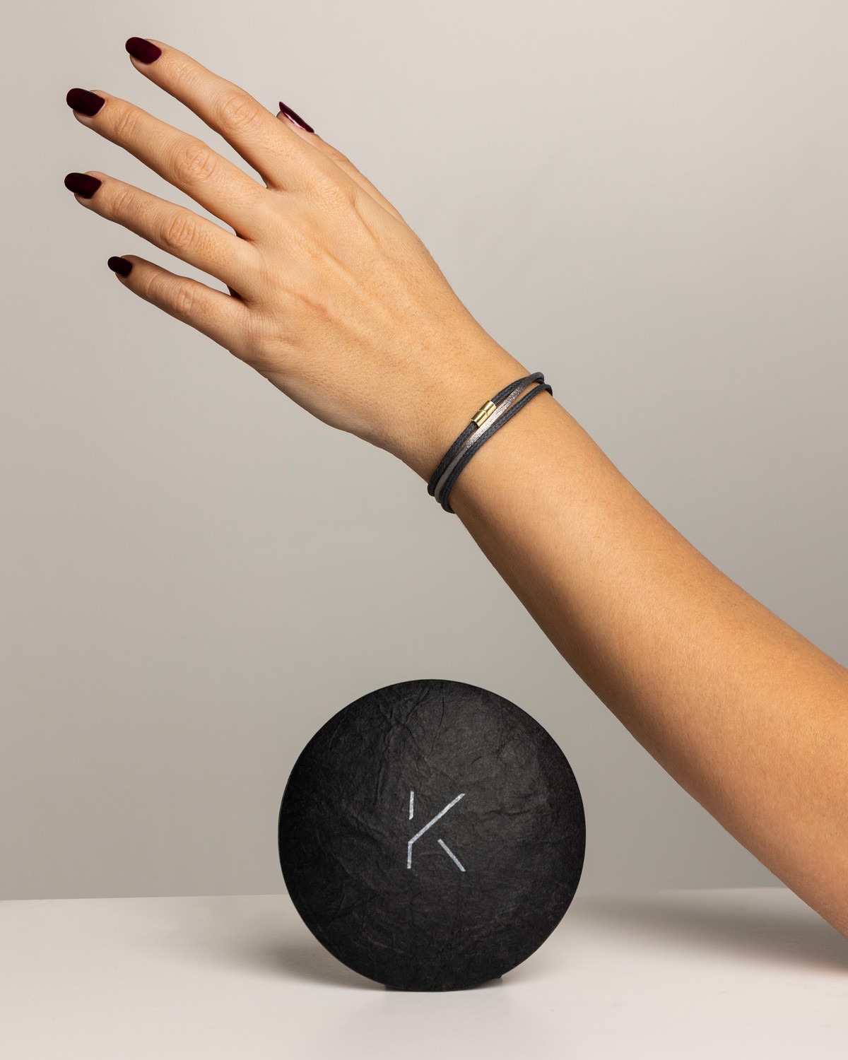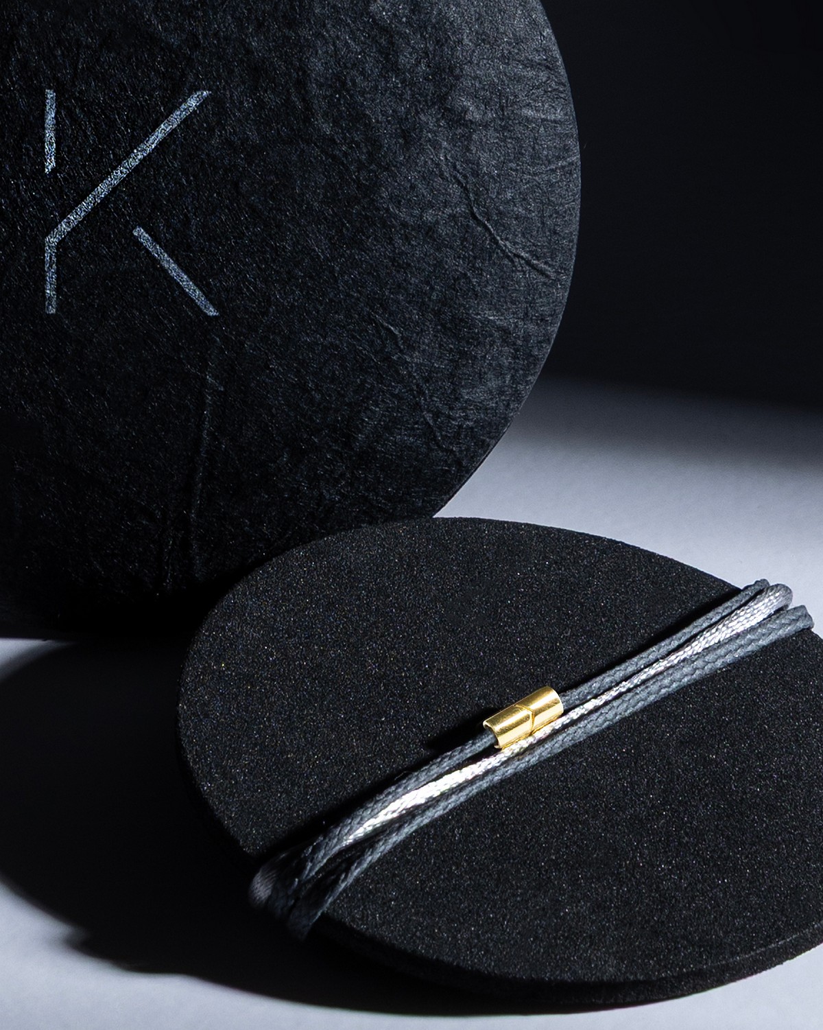 Η προσοχή στη λεπτομέρεια, τα υλικά κορυφαίας ποιότητας και η signature αισθητική της σχεδιάστριας κοσμημάτων και founder της KK Jewelry Lab, Κατερίνας Κουλουμπούρου, ξεχωρίζουν με την πρώτη ματιά στο γούρι του 2026, που είναι ένα βραχιόλι με κορδόνι και στοιχείο από μπρούντζο, χαραγμένο.
