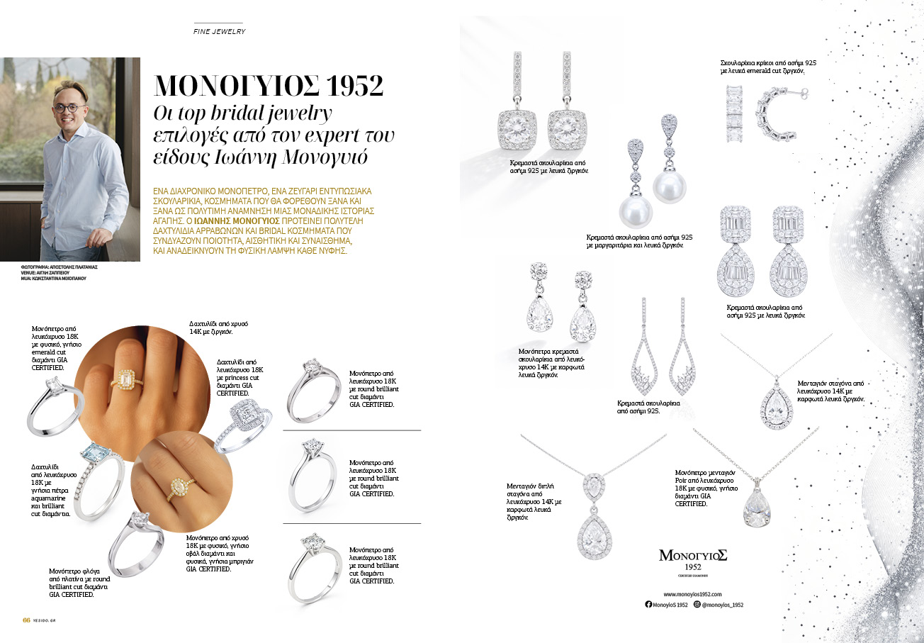 Ένα διαχρονικό μονόπετρο, ένα ζευγάρι εντυπωσιακά σκουλαρίκια, κοσμήματα που θα φορεθούν ξανά και ξανά ως πολύτιμη ανάμνηση μιας μοναδικής ιστορίας αγάπης.