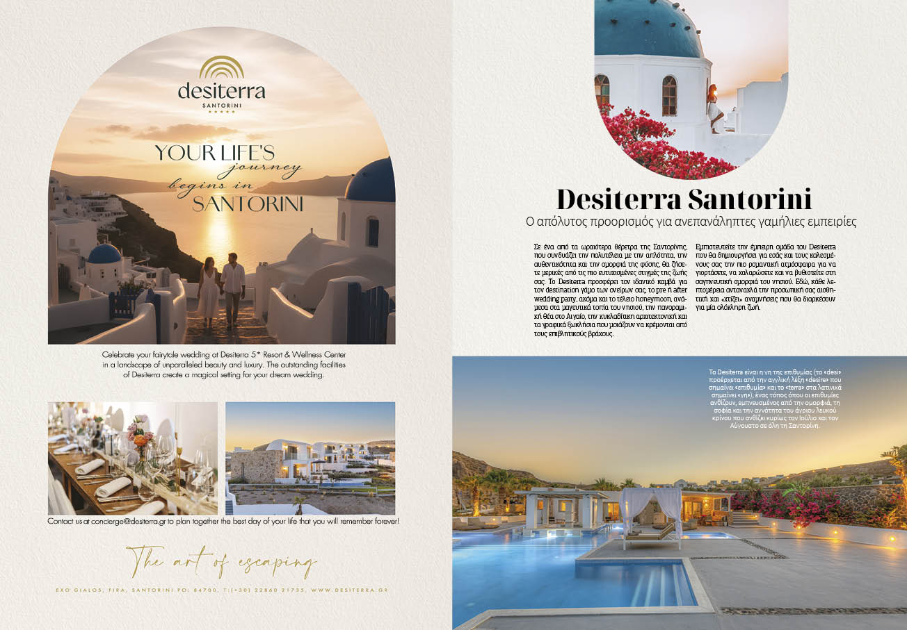 Το Desiterra προσφέρει τον ιδανικό καμβά για τον destination γάμο των ονείρων σας, το pre ή after wedding party, ακόμα και το τέλειο honeymoon, ανάμεσα στα μαγευτικά τοπία του νησιού, την πανοραμική θέα στο Αιγαίο, την κυκλαδίτικη αρχιτεκτονική και τα γραφικά ξωκλήσια που μοιάζουν να κρέμονται από τους επιβλητικούς βράχους.