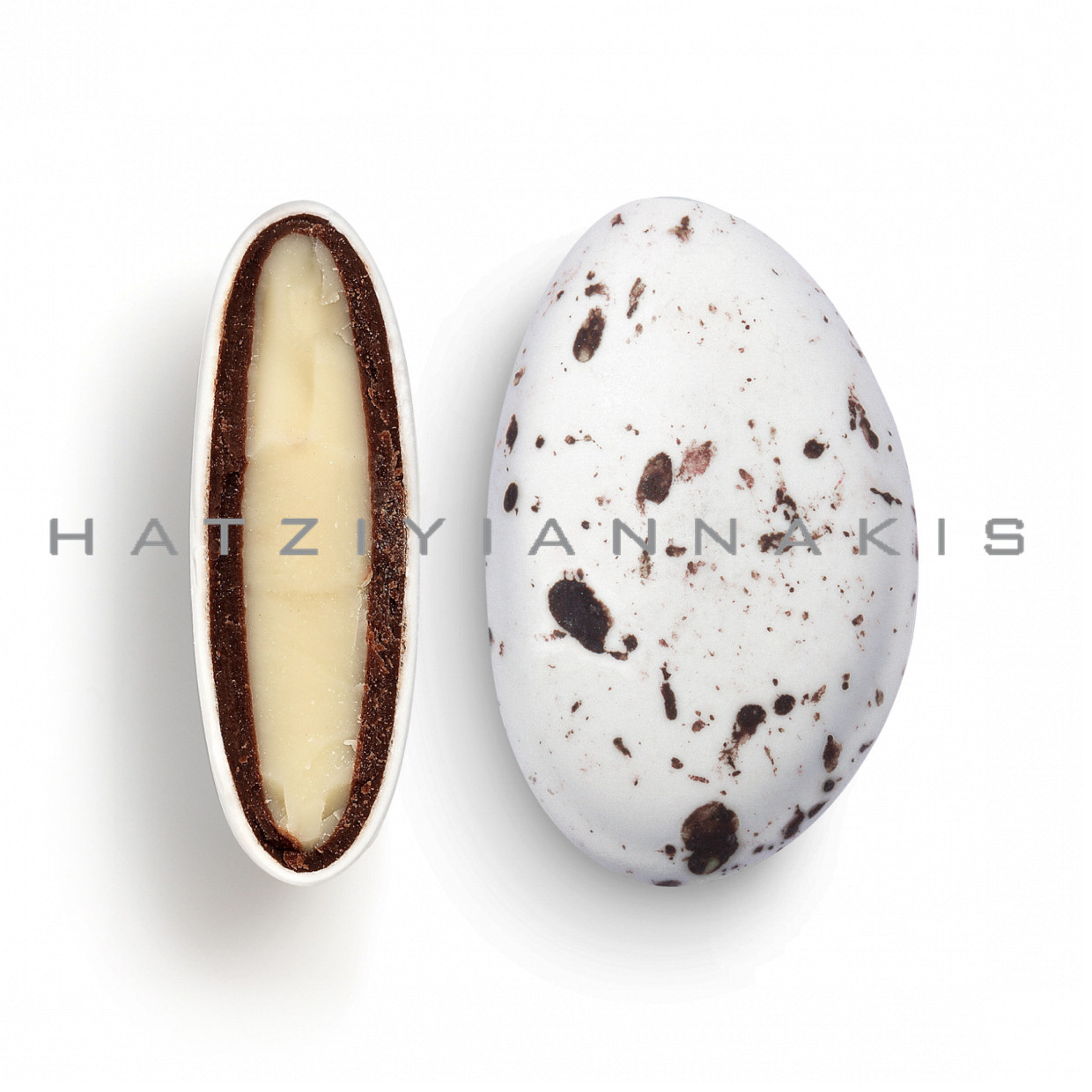 Boho wedding: Together Stracciatella, η διπλή σοκολάτα δίνει τη γεύση και οι καφέ πιτσιλιές μια εναλλακτική πινελιά χρωματίζοντας το παραδοσιακά λευκό κουφέτο.
