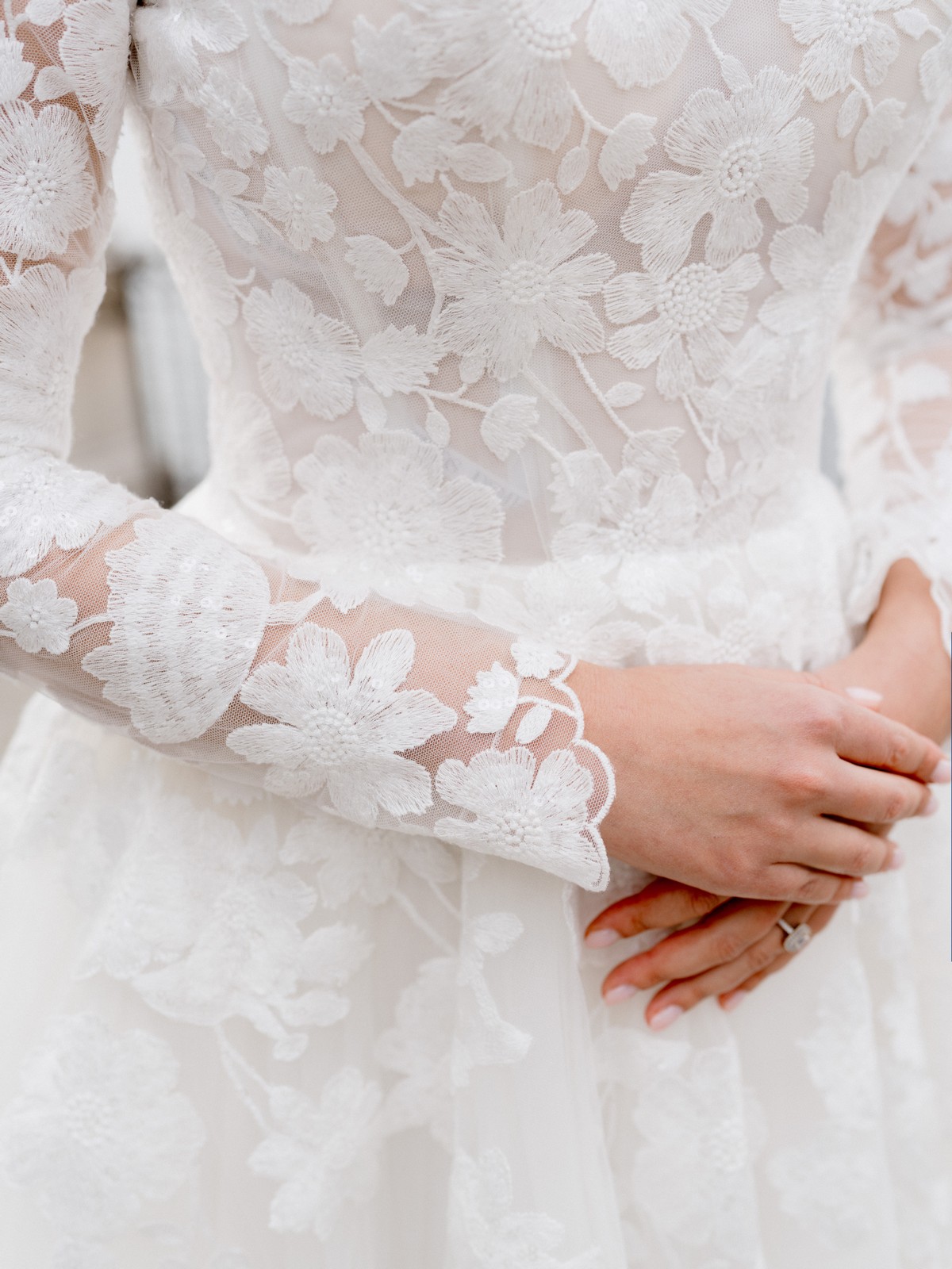 Έντονη, floral δαντέλα, που δεν περνά απαρατήρητη, διάφανο bodice με ψηλό λαιμό, μακριά μανίκια, διακριτικά κουμπάκια στην πλάτη, και μια πλούσια, ball gown φούστα με μακριά ουρά και 3D florals που εντυπωσιάζει. Ο σχεδιαστής Demetrios James Elias δημιούργησε ένα ακόμα bridal αριστούργημα υψηλής ραπτικής – ένα νυφικό που αντικατοπτρίζει την εκλεπτυσμένη δεξιοτεχνία του, την πολυετή εμπειρία του, τη φινέτσα του, την αγάπη του για τις γυναίκες, αλλά και την επιθυμία του να σχεδιάζει φορέματα που αναδεικνύουν στο έπακρο τη γυναικεία σιλουέτα.
