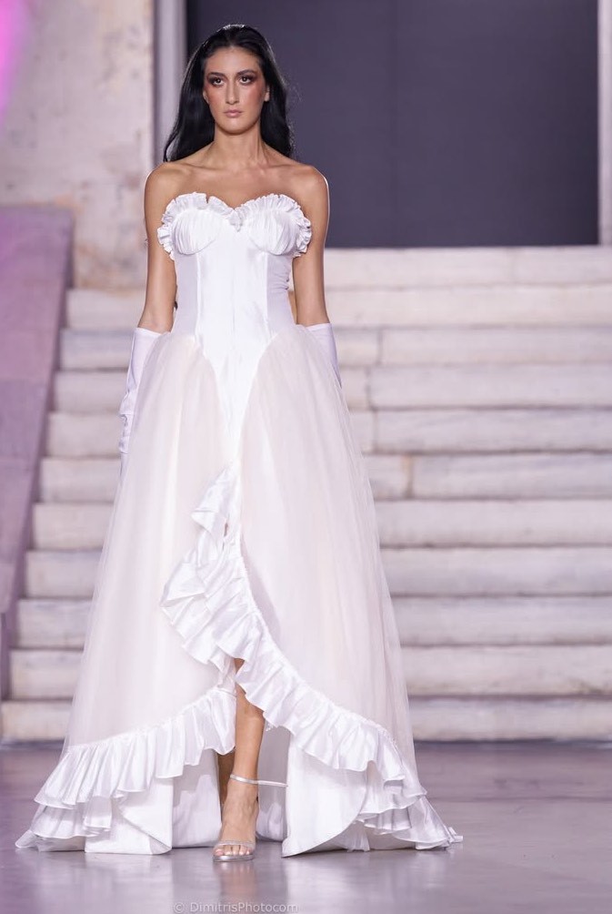 Το ξεκίνημά μου ήταν αποκλειστικά εξ αποστάσεως μέσω του e-commerce. Νύφες με έβρισκαν online και δημιουργούσαμε κατά κύριο λόγο bespoke κομμάτια, τα οποία όμως ήταν εντελώς διαφορετικά από τα συνηθισμένα, βαριά νυφικά με την παραδοσιακή δαντέλα. Με προτιμούσαν κατά κύριο λογο νύφες που παντρεύονταν σε εξωτικούς προορισμούς, θάλασσες, βουνά, κάστρα και ζητούσαν κάτι διαφορετικό, αιθέριο, ονειρικό. Το πρώτο μου νυφικό ήταν για μια κοπέλα απο τον Καναδά, η οποία με προσέγγισε και μου ζήτησε να σχεδιάσω το νυφικό της ώστε να μοιάζει με φόρεμα νύμφης του δάσους. Τότε συνειδητοποίησα τη χαρά του bespoke νυφικού, που σε κάνει μέρος της ευτυχίας μιας γυναίκας, που έχει τη δική της προσωπικότητα και τη δική της ιστορία να διηγηθεί.