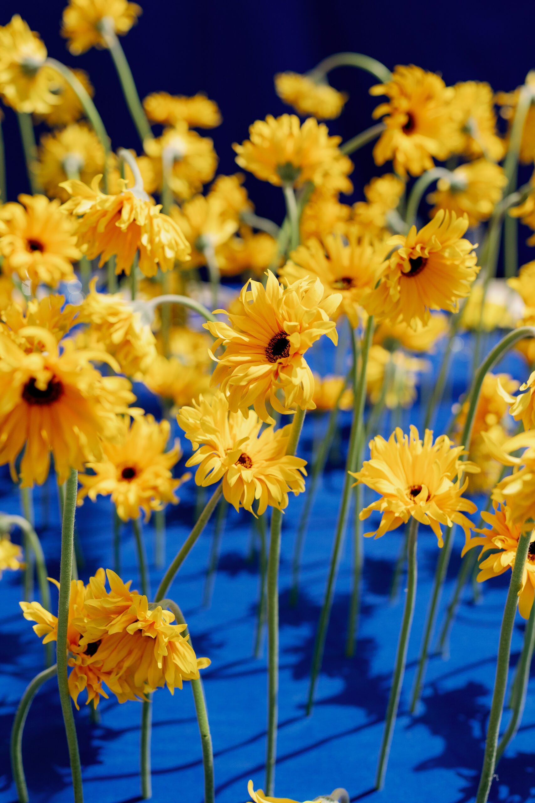Στο floral design πρωταγωνιστούν συνθέσεις με έντονη προσωπικότητα. Μπλε τριαντάφυλλα συνδυάζονται με κίτρινες ζέρμπερες, αποπνέοντας μια αίσθηση ελευθερίας και αυθορμητισμού με την ανεπιτήδευτη διάταξή τους. Τα λεπτά κοτσάνια τους χαρίζουν ύψος και κίνηση, ενώ τα άνθη τους ανοίγουν προς διαφορετικές κατευθύνσεις προσθέτοντας όγκο και βάθος.