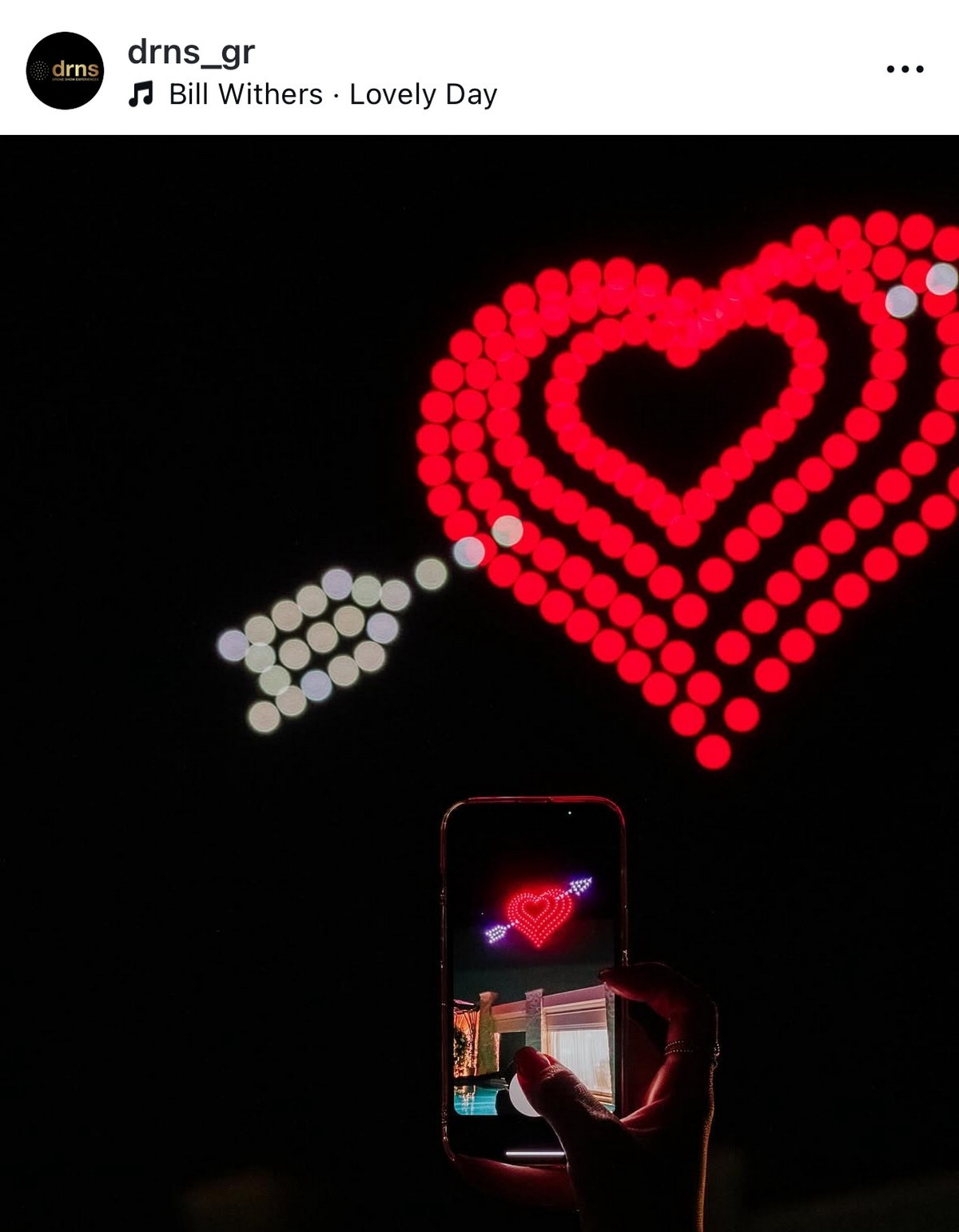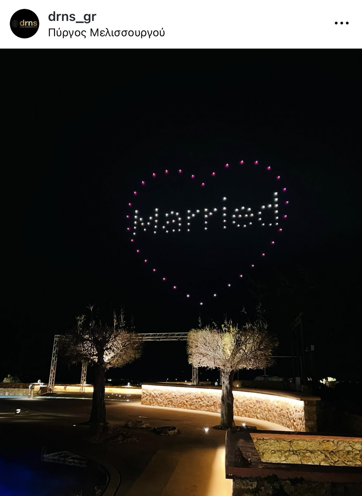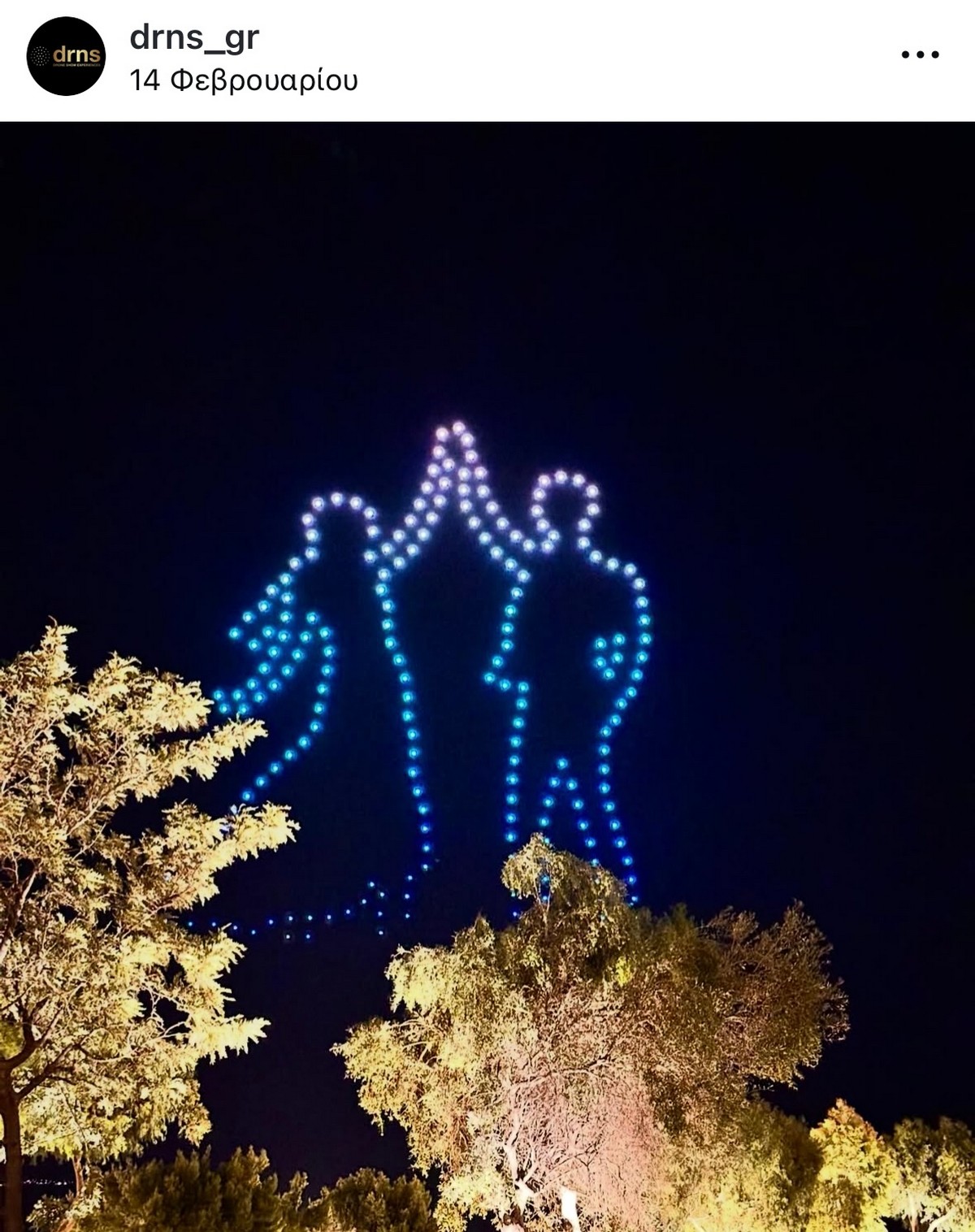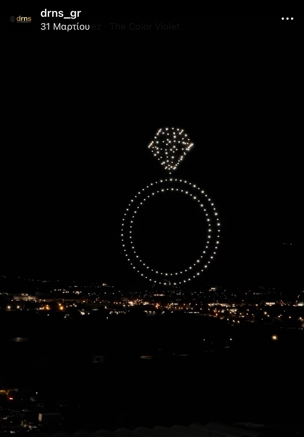 Ένα ερωτευμένο ζευγάρι που περπατά χέρι χέρι, μια καρδιά που πάλλεται, ένα μονόπετρο που λάμπει στον νυχτερινό ουρανό, δύο ποτήρια σαμπάνιας που υψώνονται στη χαρά των newlyweds, είναι μερικές μόνο από τις εντυπωσιακές εικόνες φωτός που μπορεί να δει κάποιος κάνοντας scroll down στο IG προφίλ της DRNS.