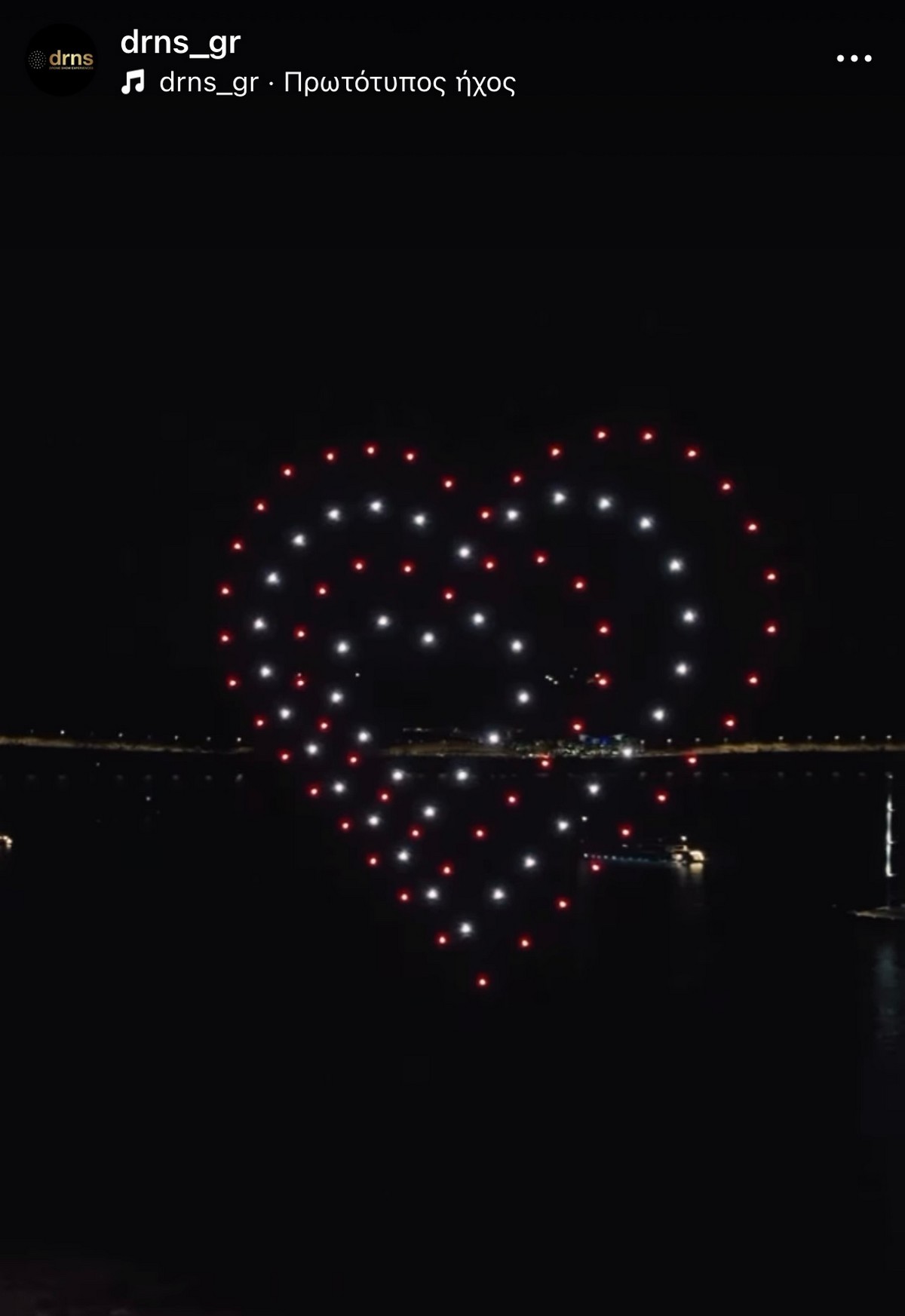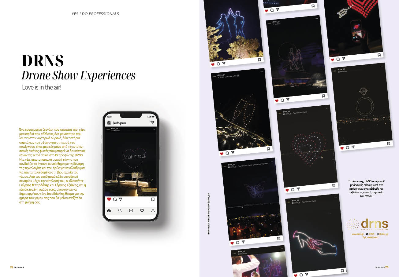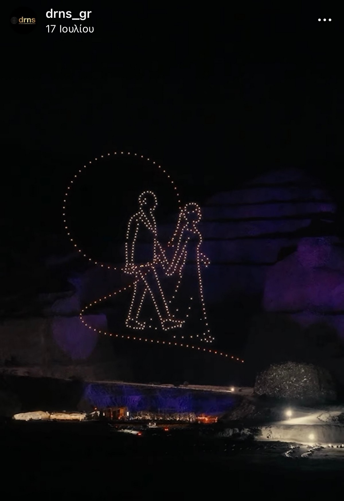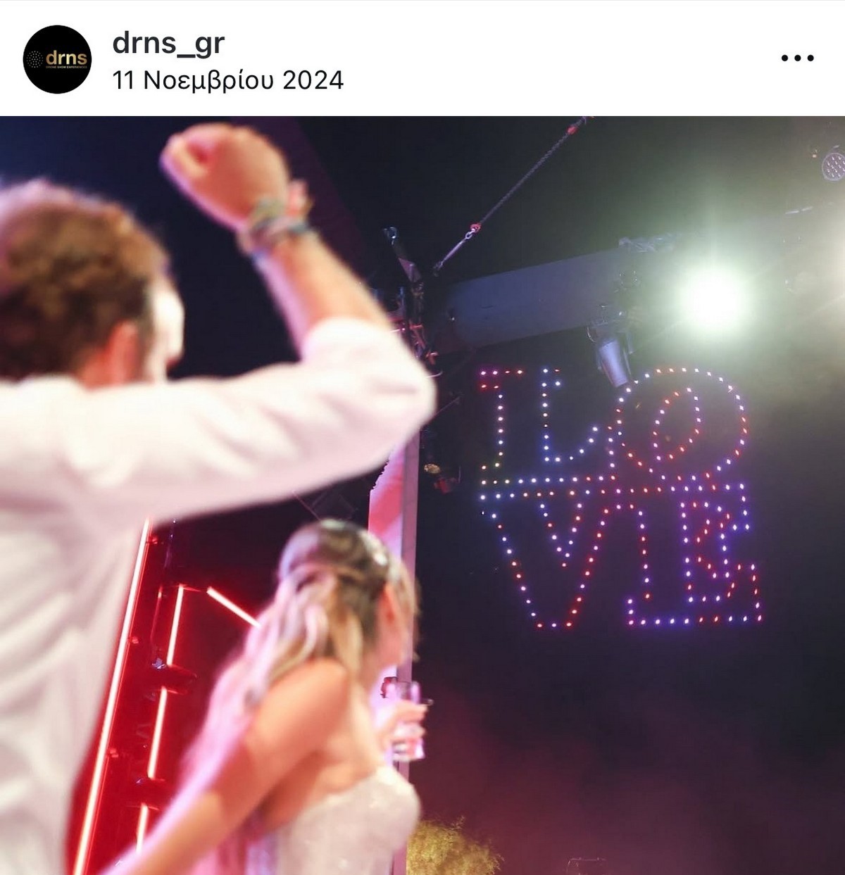 Ένα ερωτευμένο ζευγάρι που περπατά χέρι χέρι, μια καρδιά που πάλλεται, ένα μονόπετρο που λάμπει στον νυχτερινό ουρανό, δύο ποτήρια σαμπάνιας που υψώνονται στη χαρά των newlyweds, είναι μερικές μόνο από τις εντυπωσιακές εικόνες φωτός που μπορεί να δει κάποιος κάνοντας scroll down στο IG προφίλ της DRNS.