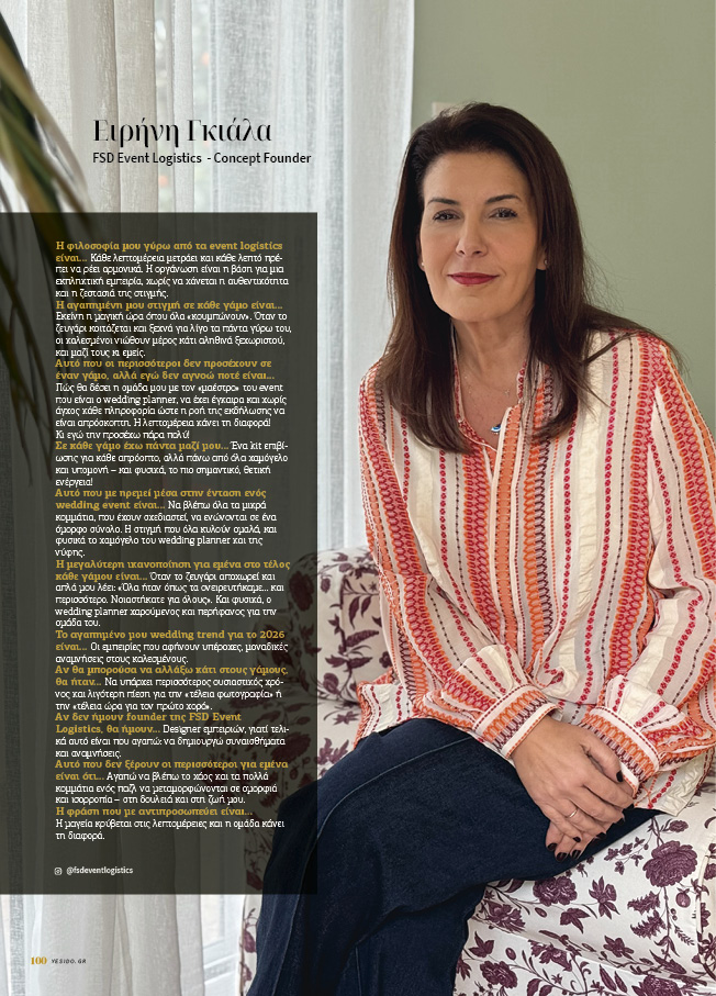 Αν δεν ήμουν founder της FSD Event Logistics, θα ήμουν… Designer εμπειριών, γιατί τελικά αυτό είναι που αγαπώ: να δημιουργώ συναισθήματα και αναμνήσεις.