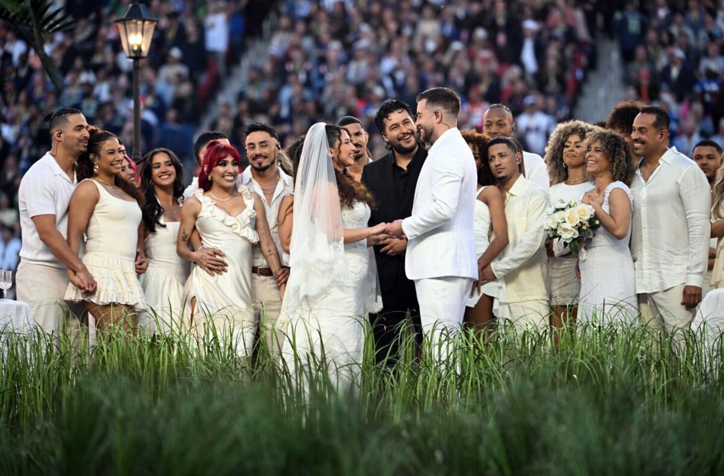 Όπως ήταν αναμενόμενο, όλος ο κόσμος σήμερα μιλάει για την εμφάνιση του Bad Bunny στο Super Bowl LX Halftime Show και το ζευγάρι που είπε πραγματικά “Yes, I Do” μπροστά σε όλη την υφήλιο! Η νύφη και ο γαμπρός που βλέπουμε να ανταλλάσσουν όρκους αιώνιας αγάπης – τα ονόματα των οποίων δεν έχουν δημοσιοποιηθεί – είναι αληθινό ζευγάρι που παντρεύτηκε με τις… ευλογίες του Πορτορικανού ράπερ!