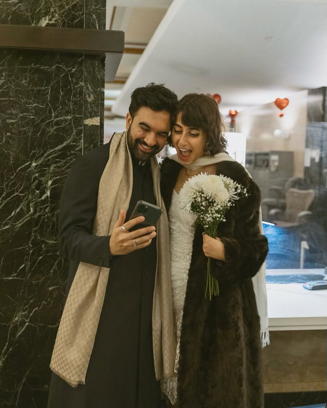 Τον Οκτώβριο του 2024 αρραβωνιάστηκαν και δύο μήνες αργότερα διοργάνωσαν την τελετή Nikah στο Dubai, μια πόλη στενά συνδεδεμένη με την οικογένεια και τα παιδικά χρόνια της Duwaji. Η γιορτή πραγματοποιήθηκε στο roof του Vida Creek, με θέα το Burj Khalifa, σύμφωνα με την New York Post. Στιγμιότυπα που κοινοποιήθηκαν στο Instagram από τον florist του LMF, έδειχναν ολόλευκα τριαντάφυλλα και λυσίανθους με φόντο το ηλιοβασίλεμα.