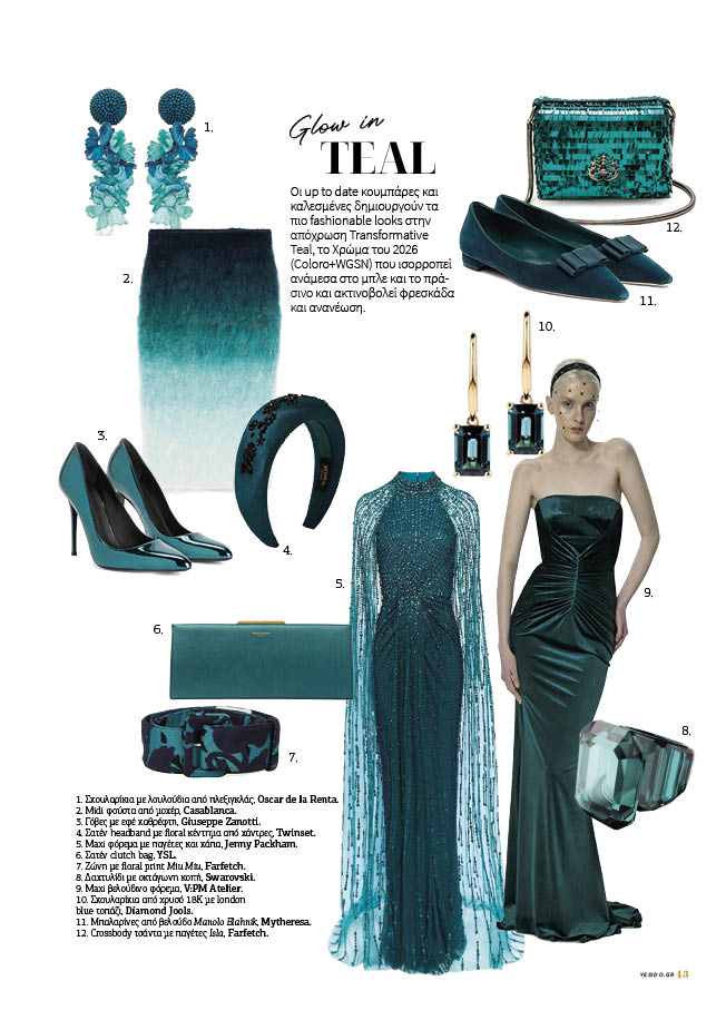 Οι up to date κουμπάρες και καλεσμένες δημιουργούν τα πιο fashionable looks στην απόχρωση Transformative Teal, το Χρώμα του 2026 (Coloro+WGSN) που ισορροπεί ανάμεσα στο μπλε και το πράσινο και ακτινοβολεί φρεσκάδα και ανανέωση.