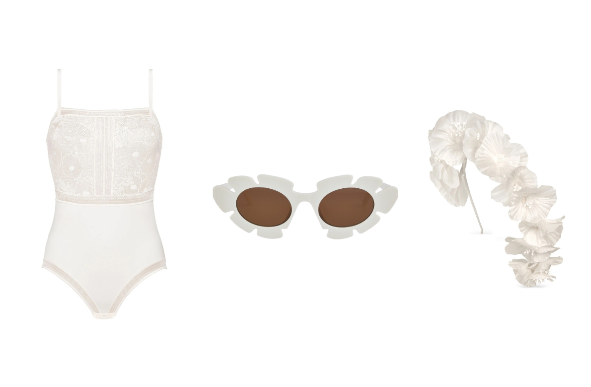 Bodysuit με δαντέλα, ERES | Cat-eye γυαλιά ηλίου, Loewe, Mytheresa | Headband με τρισδιάστατα λουλούδια, Jennifer Behr