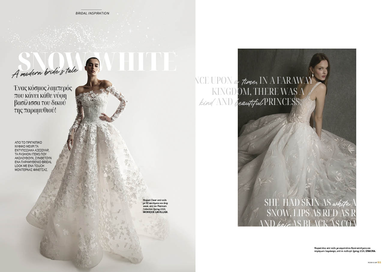 Από το πριγκιπικό νυφικό μέχρι τα εντυπωσιακά αξεσουάρ, τα fashion items που ακολουθούν, συνθέτουν ένα παραμυθένιο bridal look με ένα touch μοντέρνας φινέτσας.