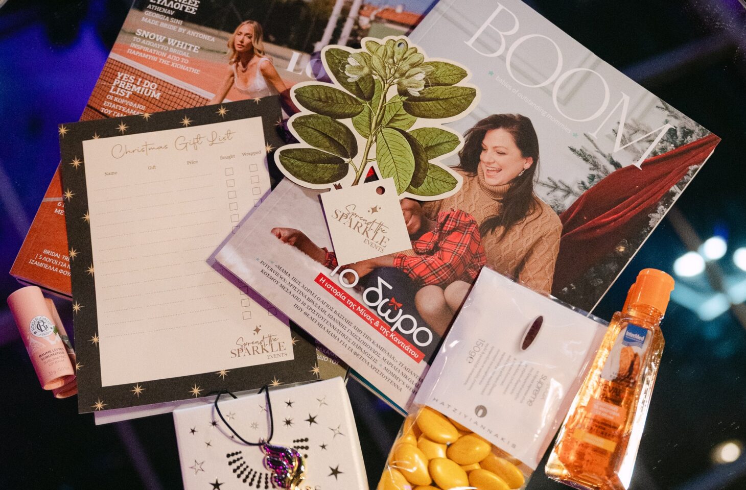 Αν κάτι χαρακτηρίζει τα χριστουγεννιάτικα πάρτι του Yes I Do – εκτός φυσικά από τα έντονα party vibes, το εξαιρετικό finger food και τα απολαυστικά cocktails – είναι τα goodie bags των καλεσμένων, τα οποία φέρουν την υπογραφή της Φένιας Λαγούδη και της Spread The Sparkle Events.
