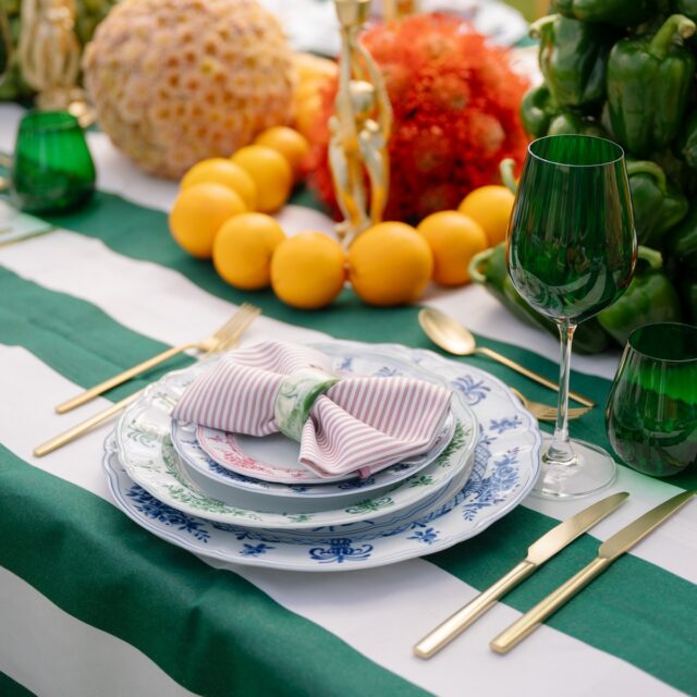 Πιάτα με floral λεπτομέρειες, ριγέ υφάσματα και ποτήρια σε έντονα χρώματα για ένα modern chic αποτέλεσμα!