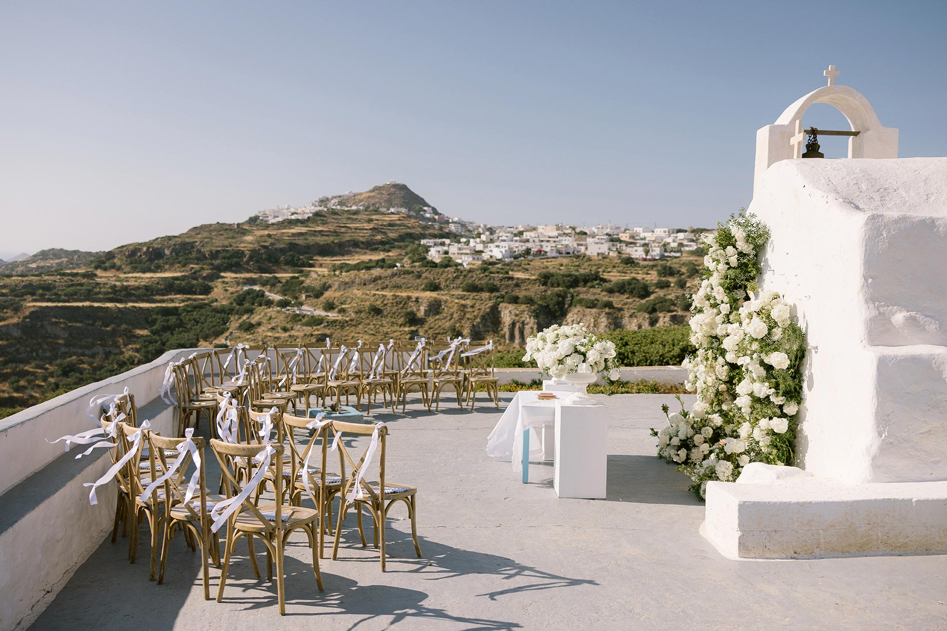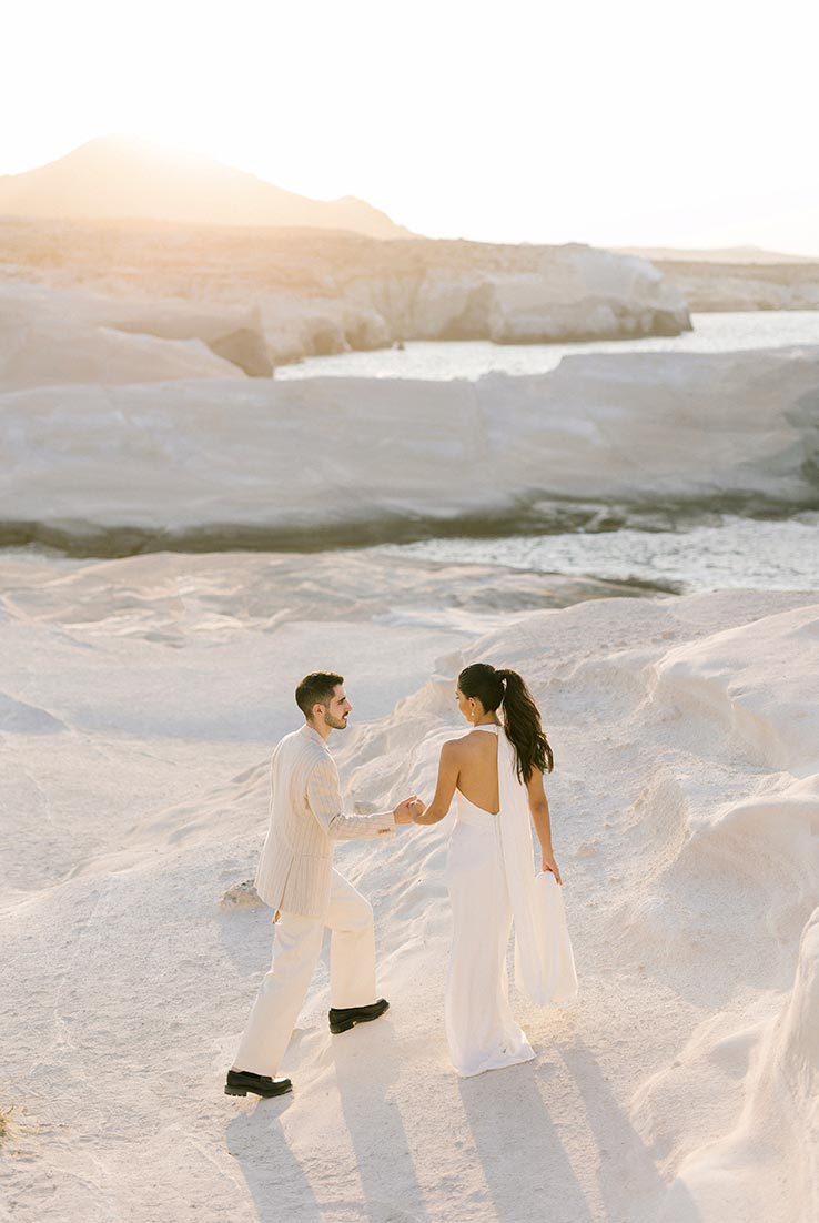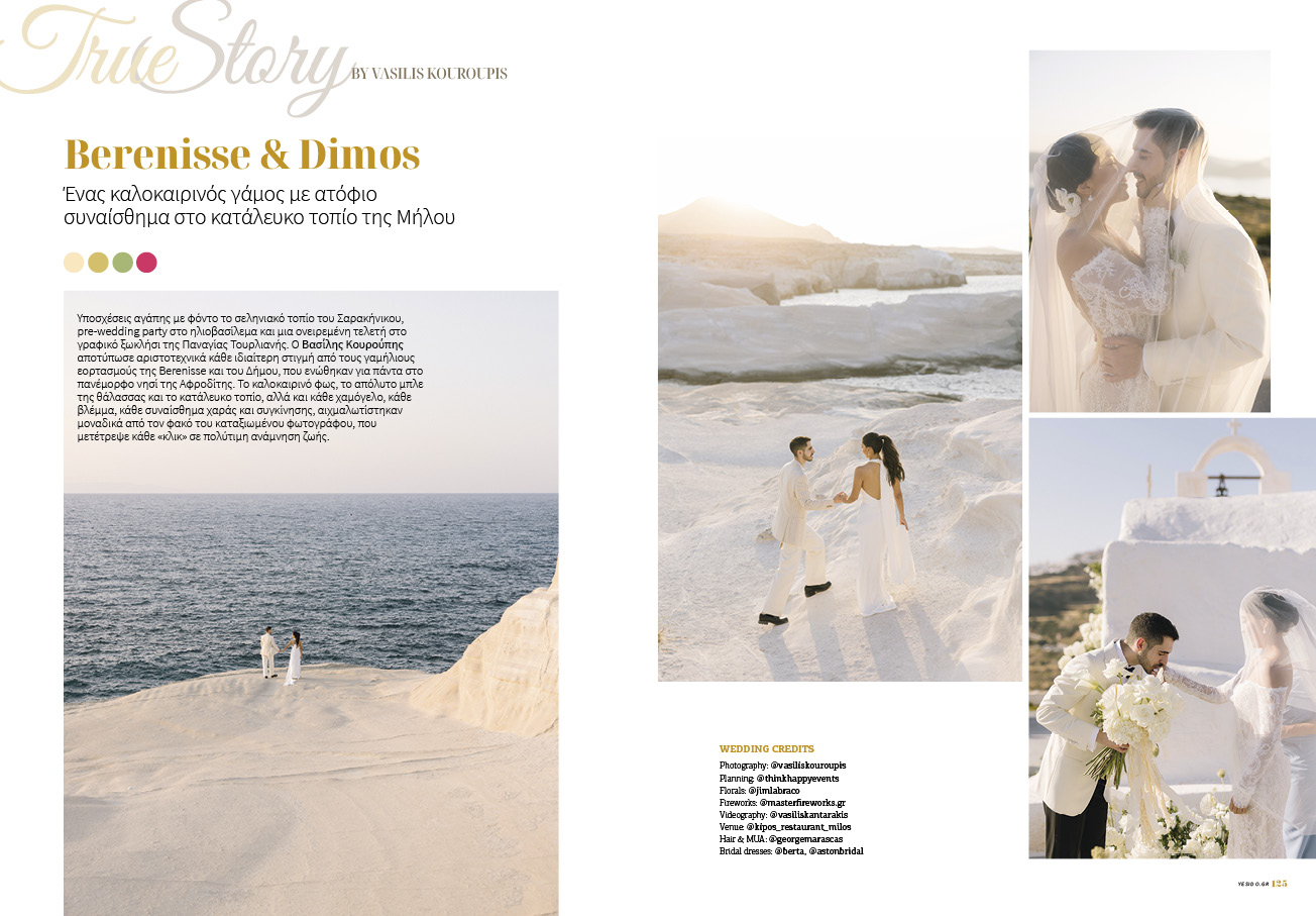 Υποσχέσεις αγάπης με φόντο το σεληνιακό τοπίο του Σαρακήνικου, pre-wedding party στο ηλιοβασίλεμα και μια ονειρεμένη τελετή στο γραφικό ξωκλήσι της Παναγίας Τουρλιανής. Ο Βασίλης Κουρούπης αποτύπωσε αριστοτεχνικά κάθε ιδιαίτερη στιγμή από τους γαμήλιους εορτασμούς της Berenisse και του Δήμου, που ενώθηκαν για πάντα στο πανέμορφο νησί της Αφροδίτης.