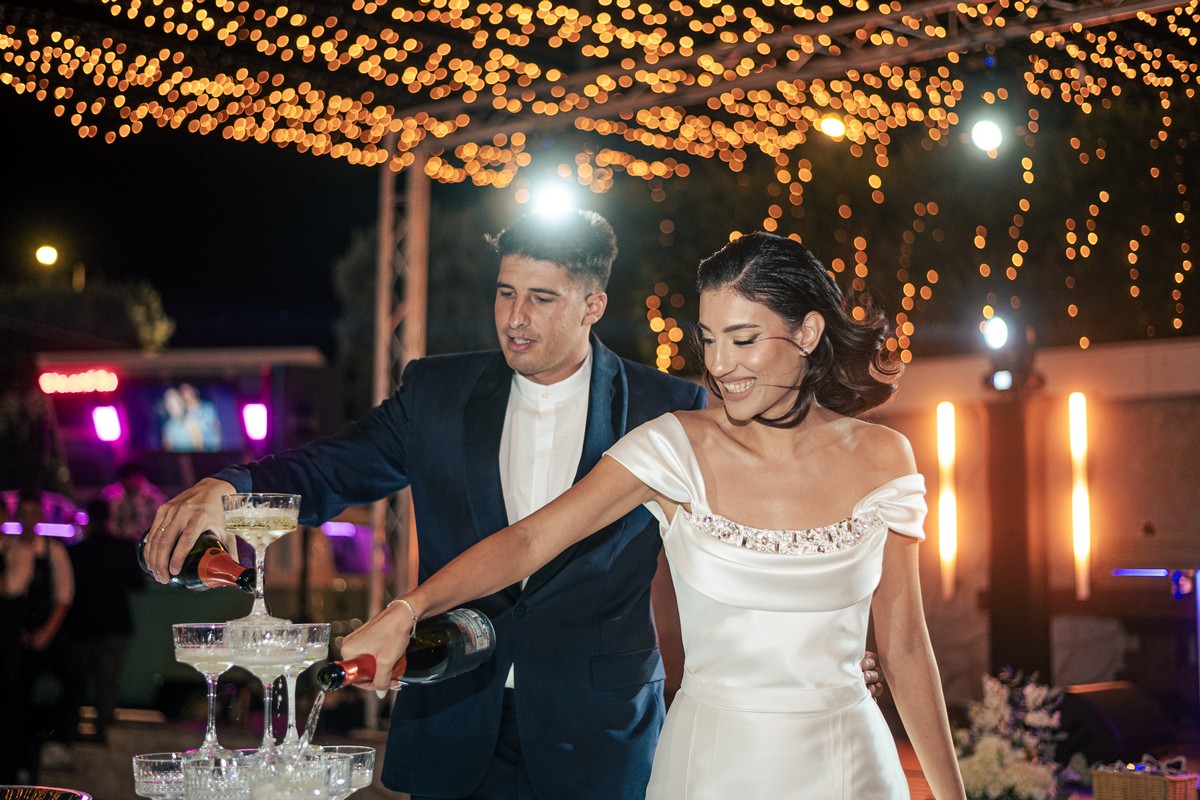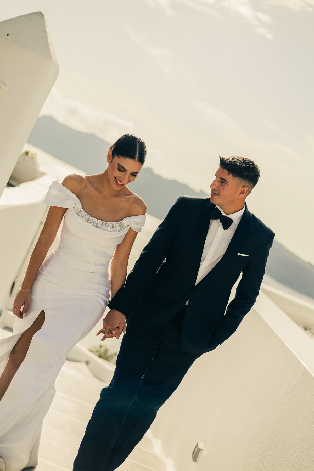 Ο γάμος τους ήταν μια γιορτή που επισφράγισε με τον πιο όμορφο τρόπο την ιστορία αγάπης τους. Η Εμμανουέλα και ο Φάνης παντρεύτηκαν με θρησκευτικό γάμο στην Κόρινθο, έχοντας στο πλευρό τους εκλεκτούς φίλους και συγγενείς, και ολοκλήρωσαν το wedding «ταξίδι» τους με μία μοναδική φωτογράφιση λίγες ημέρες αργότερα στην ειδυλλιακή Σαντορίνη, τόπο καταγωγής της νύφης.