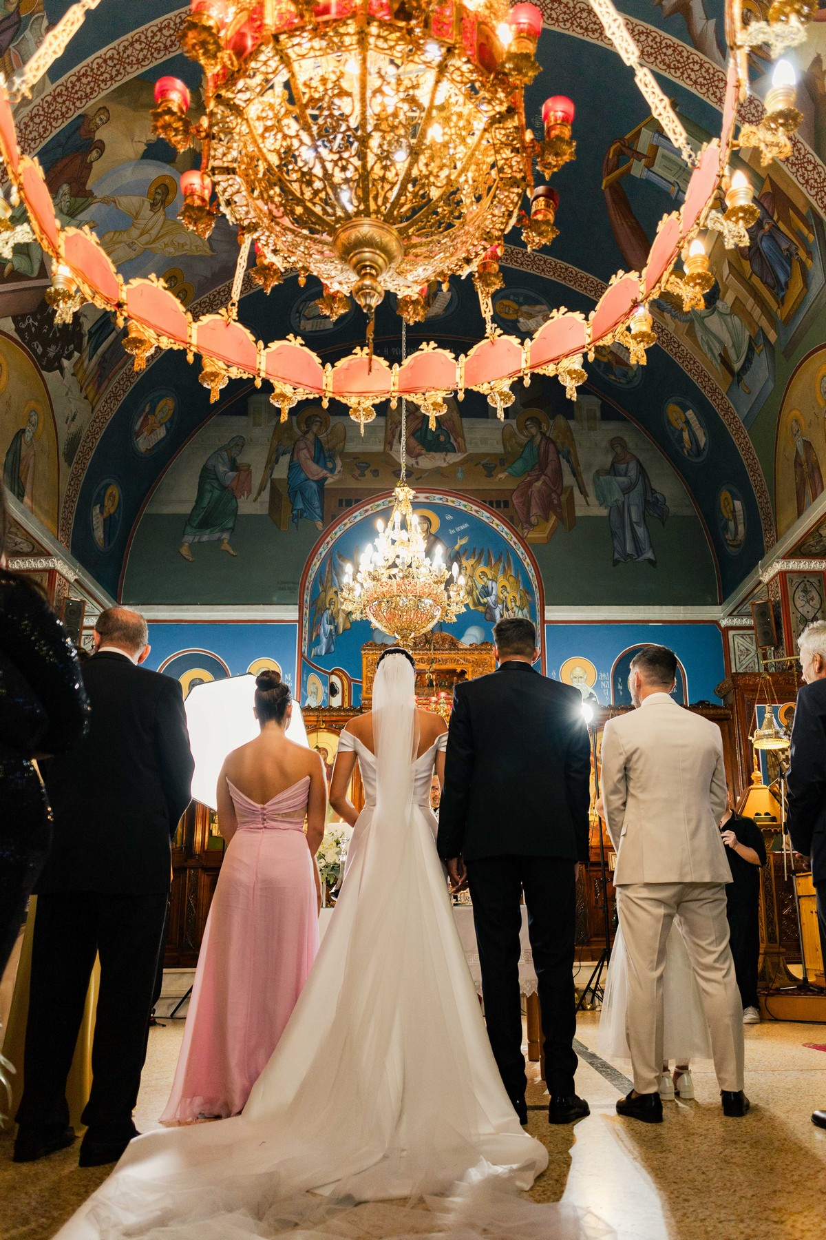 «Συνολικά κάναμε 5 πρόβες περίπου, και στην τελευταία, όταν πια δοκίμασα το νυφικό μου, δεν το πίστευα! Δεν μπορούσα να πιστέψω πόσο όμορφο ήταν. Μου το έδωσαν τα κορίτσια πολύ προσεγμένο, φρεσκοσιδερωμένο, και ήταν απλά υπέροχο. Ήταν φυσικά και πάρα πολύ ελαφρύ, μου έδινε απίστευτη ελευθερία κινήσεων για να μπορώ να διασκεδάσω με την ψυχή μου στο γαμήλιο πάρτι. Όπως καταλαβαίνεις, μείναμε κατενθουσιασμένες από την Denise Eleftheriou, και λέω “μείναμε”, γιατί και η μητέρα μου έραψε εκεί το εκπληκτικό κίτρινο φόρεμά της, αλλά και η κουμπάρα μου πήρε το δικό της pink dress από την Denise».