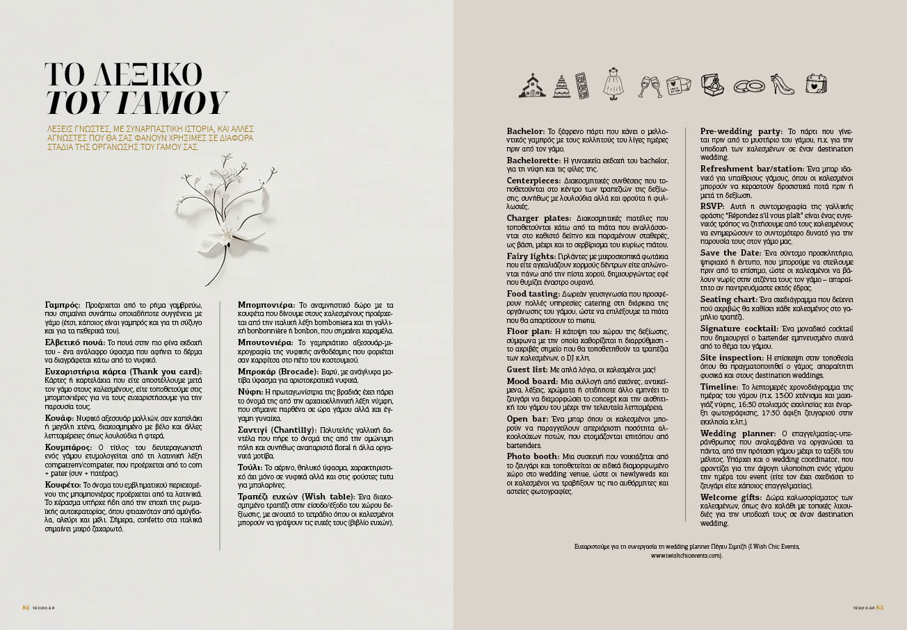 Λέξεις γνωστές, με συναρπαστική ιστορία, και άλλες άγνωστες που θα σας φανούν χρήσιμες σε διάφορα στάδια της οργάνωσης του γάμου σας.