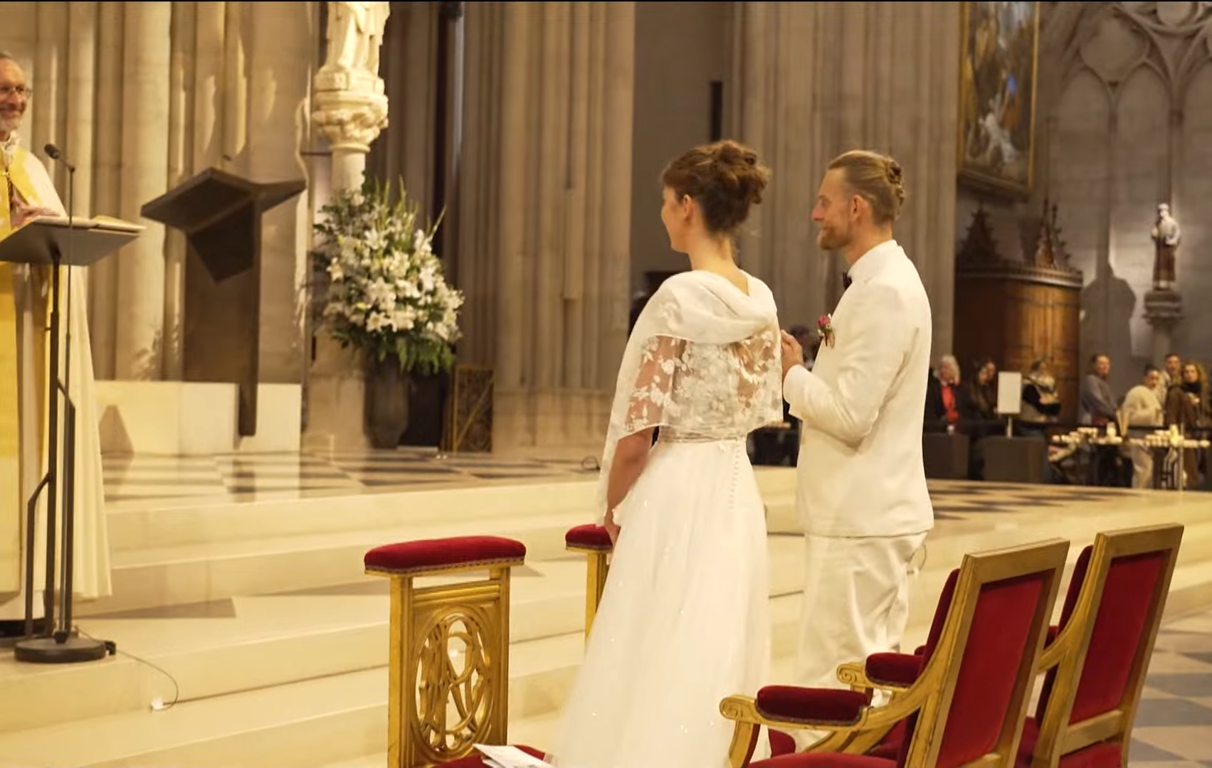 Εκείνο που ίσως δεν γνωρίζουν είναι ότι ο γαμπρός Martin Lorentz, έλαβε κατ’ εξαίρεση την άδεια να παντρευτεί μέσα στον καθεδρικό ναό, καθώς ήταν ένας από τους ξυλουργούς που συμμετείχε στο έργο της αναστήλωσής του, ύστερα από την πυρκαγιά που ξέσπασε Απρίλιο του 2019 συγκλονίζοντας όλο τον πλανήτη.