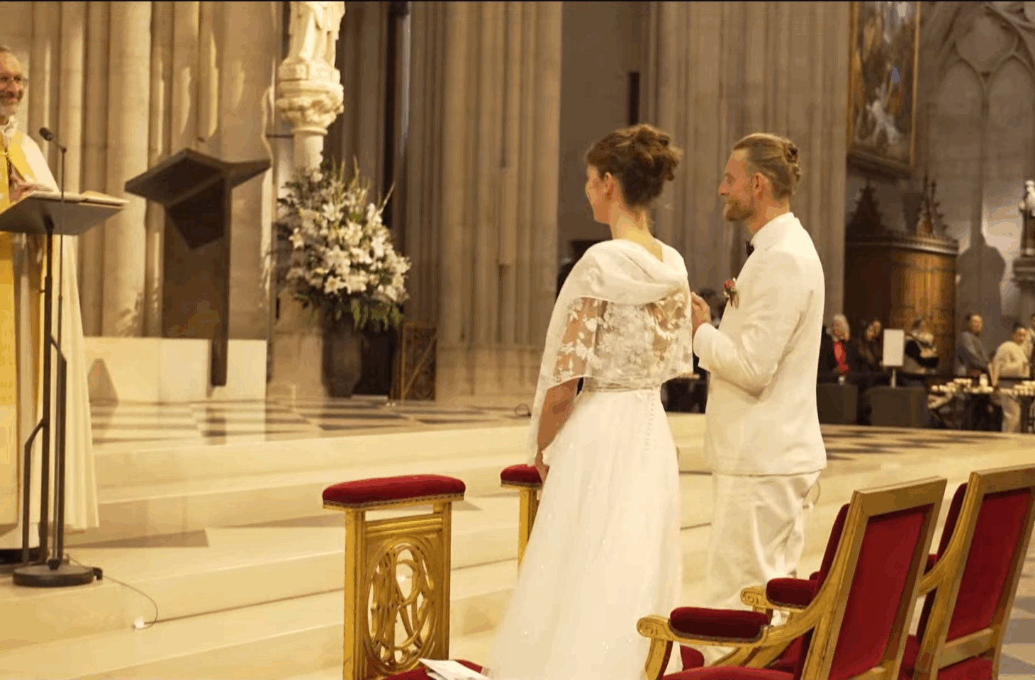 Εκείνο που ίσως δεν γνωρίζουν είναι ότι ο γαμπρός Martin Lorentz, έλαβε κατ’ εξαίρεση την άδεια να παντρευτεί μέσα στον καθεδρικό ναό, καθώς ήταν ένας από τους ξυλουργούς που συμμετείχε στο έργο της αναστήλωσής του, ύστερα από την πυρκαγιά που ξέσπασε Απρίλιο του 2019 συγκλονίζοντας όλο τον πλανήτη.