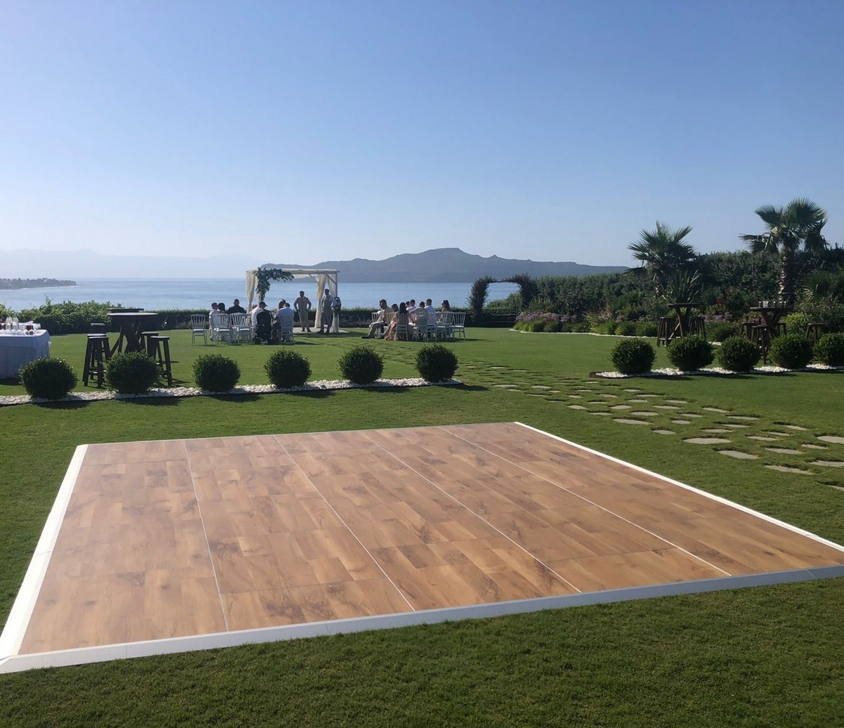 Η εταιρεία Soundbox, του Παντελή Ασημακόπουλου, παρουσιάζει το next big thing στα events: ένα πολυλειτουργικό dance floor που θα απογειώσει το γαμήλιο πάρτι σας. Η ξύλινη πίστα έχει διαστάσεις 8 x 8 μ., είναι κατασκευασμένη από δρυ υψηλής ποιότητας, και συνδυάζει αισθητική, ασφάλεια και απόλυτη σταθερότητα. Προσαρμόζεται εύκολα σε κάθε επιφάνεια –είτε σε άμμο, είτε σε γκαζόν, είτε σε επίπεδο έδαφος–, ενώ υπάρχει δυνατότητα τοποθέτησης και custom αυτοκόλλητου σε χρώμα και σχέδιο πλήρως εναρμονισμένο με το concept του γάμου σας. Περισσότερες πληροφορίες στο IG @soundboxgr.